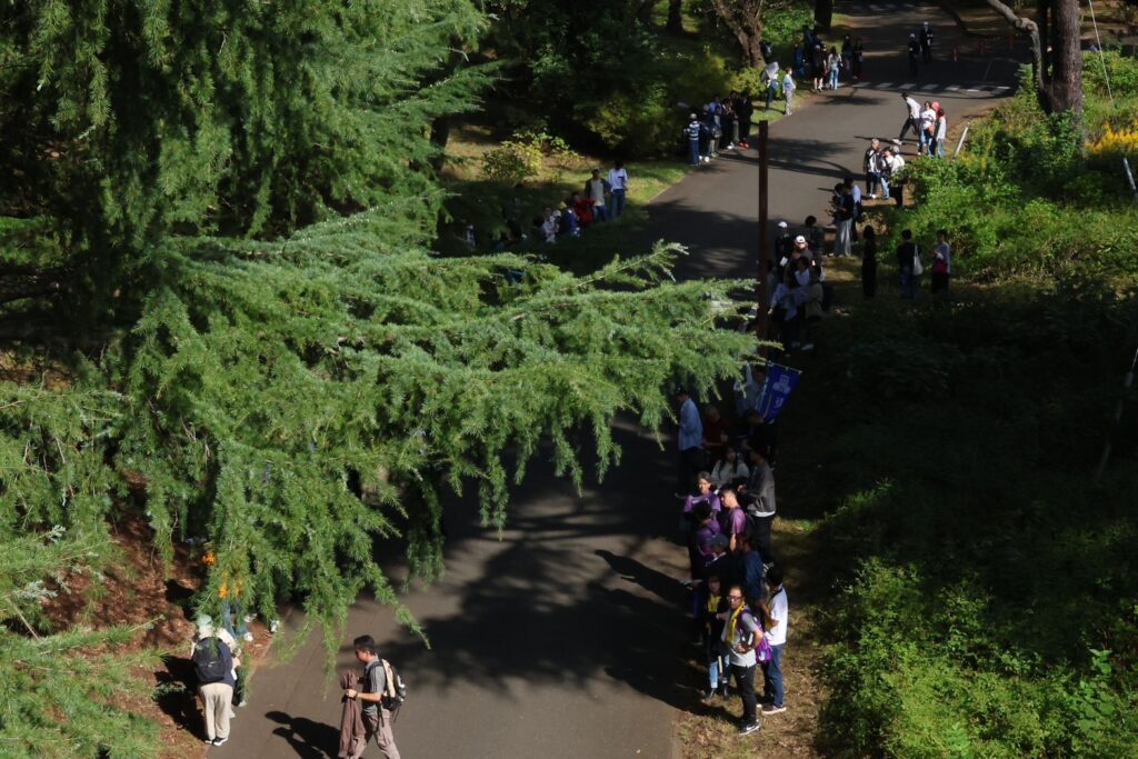 大型モニターや司会の進行があるため、臨場感たっぷり。歓喜や涙の瞬間を共有できます。 - 各大学の待機エリア付近